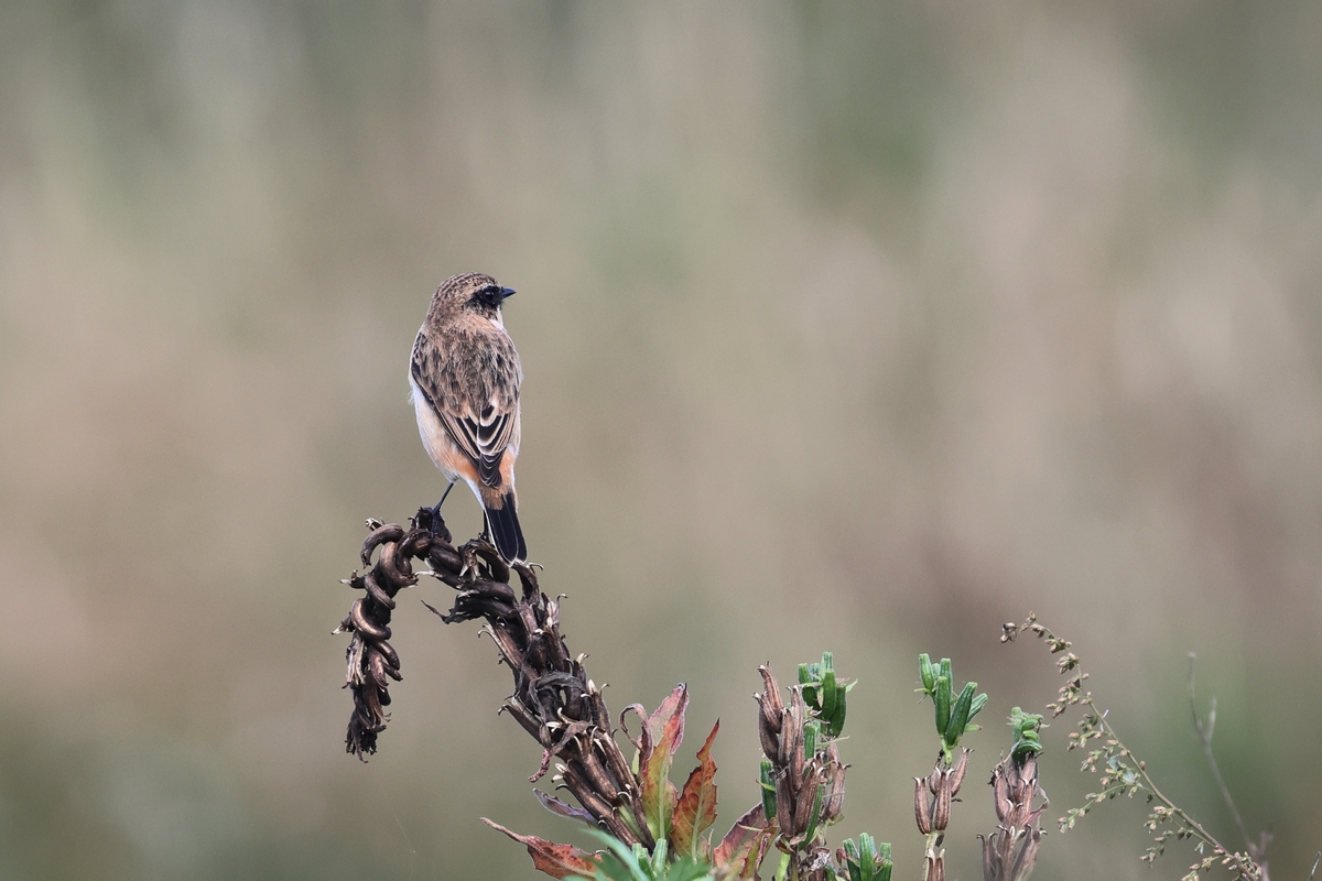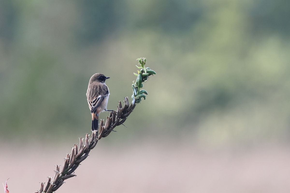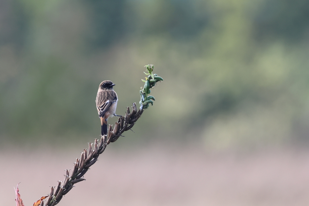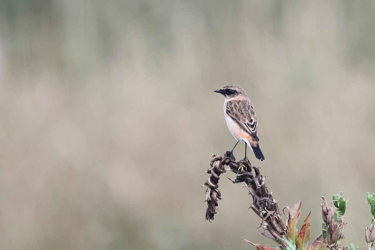 栄村に 近い山の中 やはりクマ🐻に警戒しないとならない 昨今です。今回はクマの生息域に お邪魔する立場でした。そこで 牧場を選びました。すると 今は使用されていない牧場でした。 また 鳥甲牧場は 苗場山の山麓ジオパークの一部分にあたるのだそうです。記載されている文章は以下の内容です。「五宝木湖成層と呼ばれる湖成層が分布することから、湖であったことが推測されます。時代は不明ですが、苗場火山噴出物、鳥甲火山噴出物の堆積と関連して形成されたと考えられます」今は 苗場山 鳥甲山となっており 昔湖の底で繋がっていたとは ロマンのある話です。 ノビタキが 居ました!!