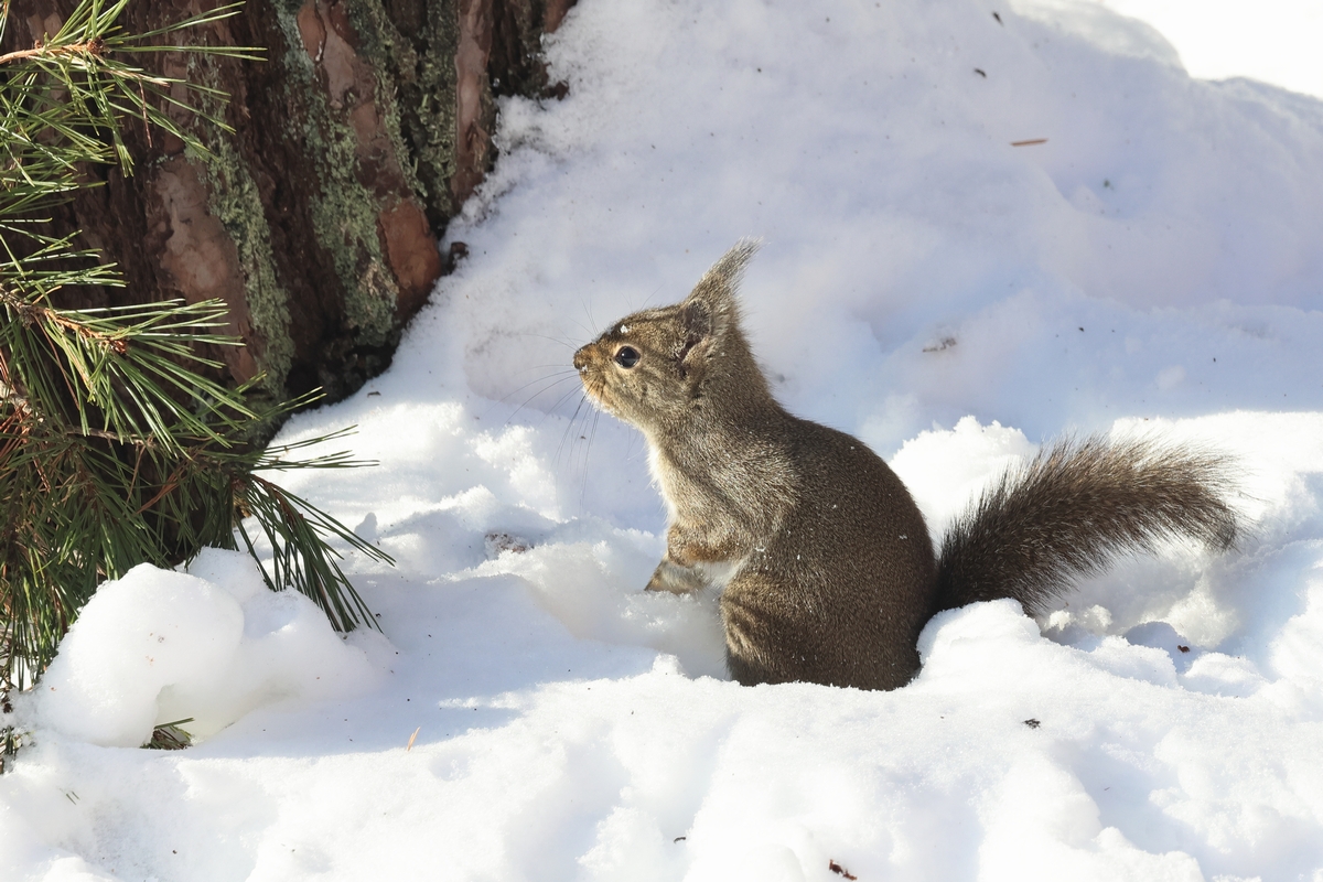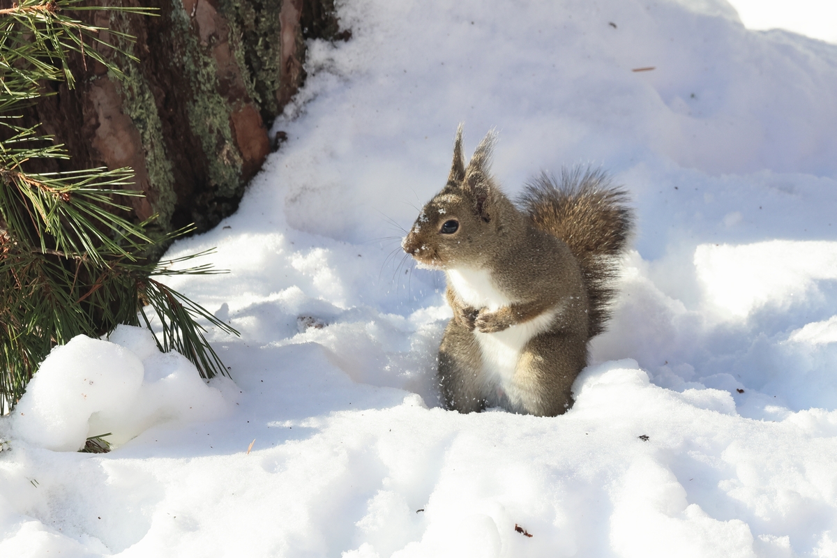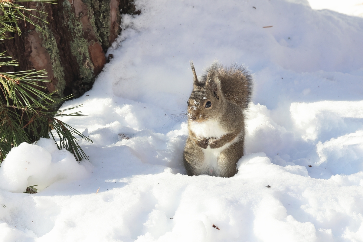 しばらくご無沙汰しました。 そちらでは この時期にも 雪の上を飛び回るリスが見れるのですか。 いいですね。 私はリスやキツネの足跡(フィールドサイン)を見たくて、群馬の北部にあるスキー場の隣の標高の高い雪原でスノーシュー 散歩をしました。ところがこの日は悪天候で大雪と風雪、気温がおそらくマイナス14度ぐらい。リスの足跡 どころか 自分たちが歩いた足跡もしばらくすると 降雪と風で消えてしまうような状態。 冬山の厳しさをたっぷりと味わえた「充実の」1日でした。 今度はもう少し天気の良い時に 再チャレンジしたいものです。 それでも動き回るリスやキツネを見ることはかなり難しいでしょうね、 そちらと違って。