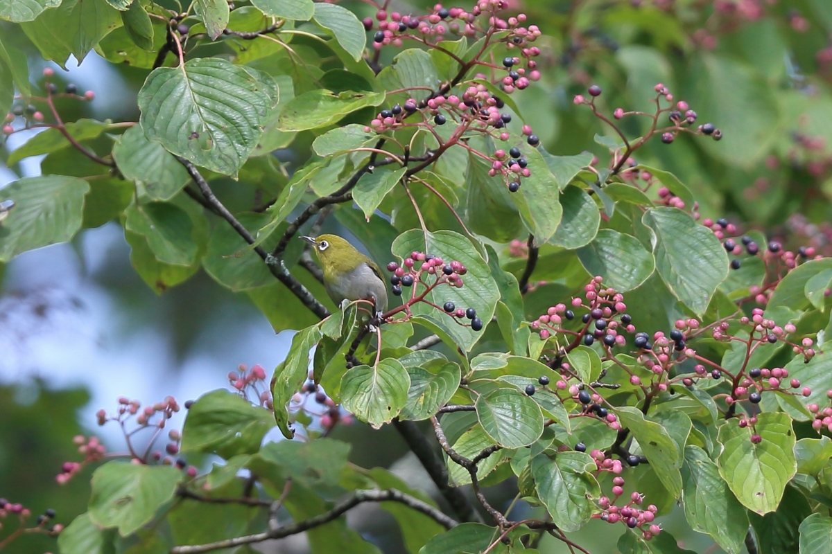 ミズキの実に クロちゃんが来ましたか!! メジロも可愛いです!!