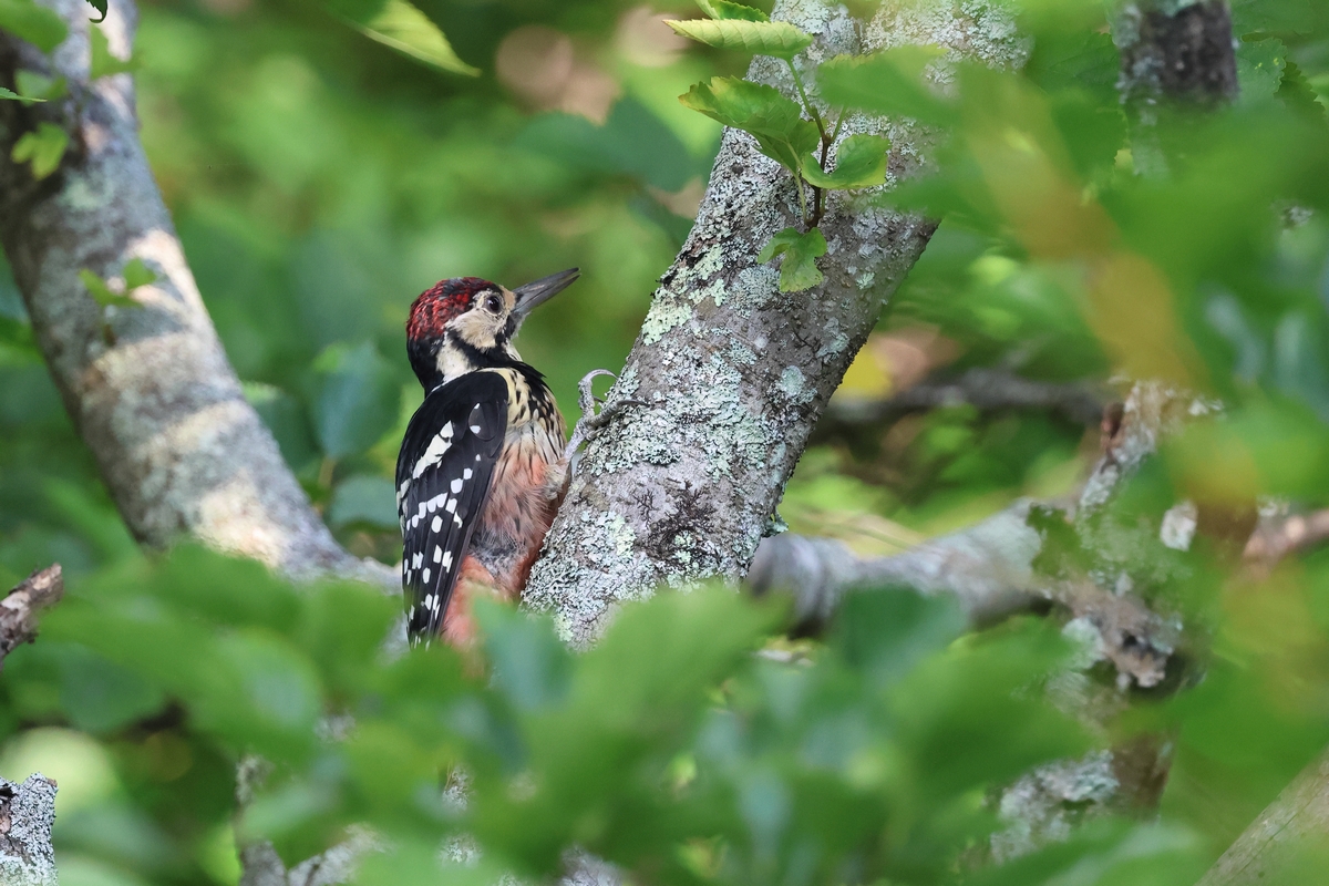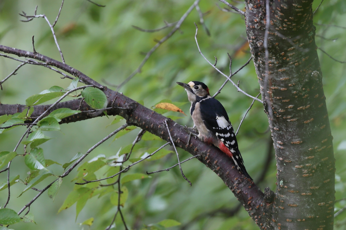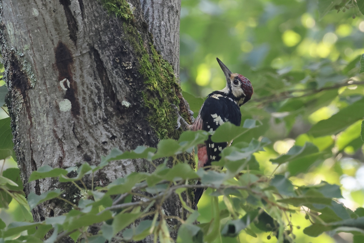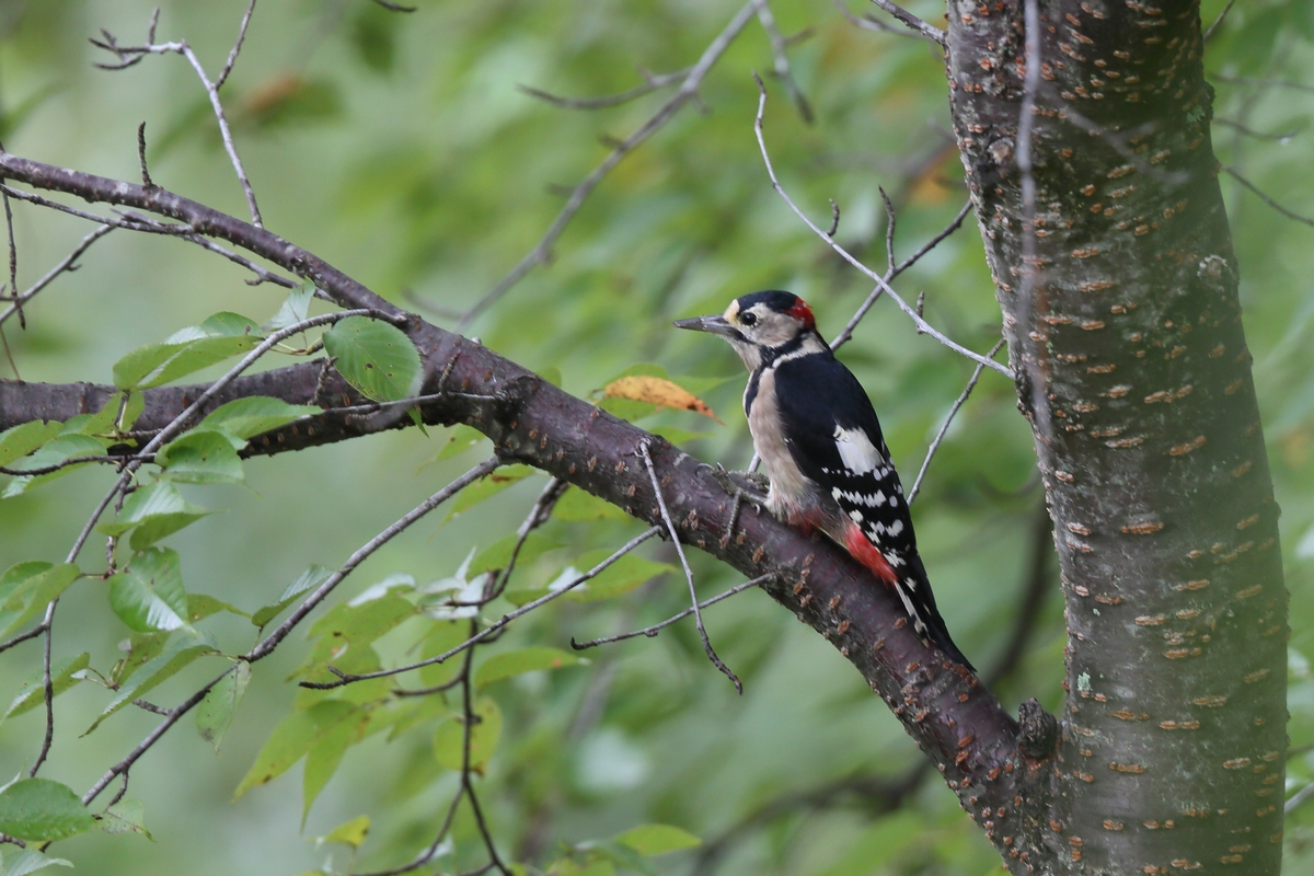 木をコツコツとつつく音で気が付くのですが、オオアカゲラに出会うのは運が良い日なのかもしれません。