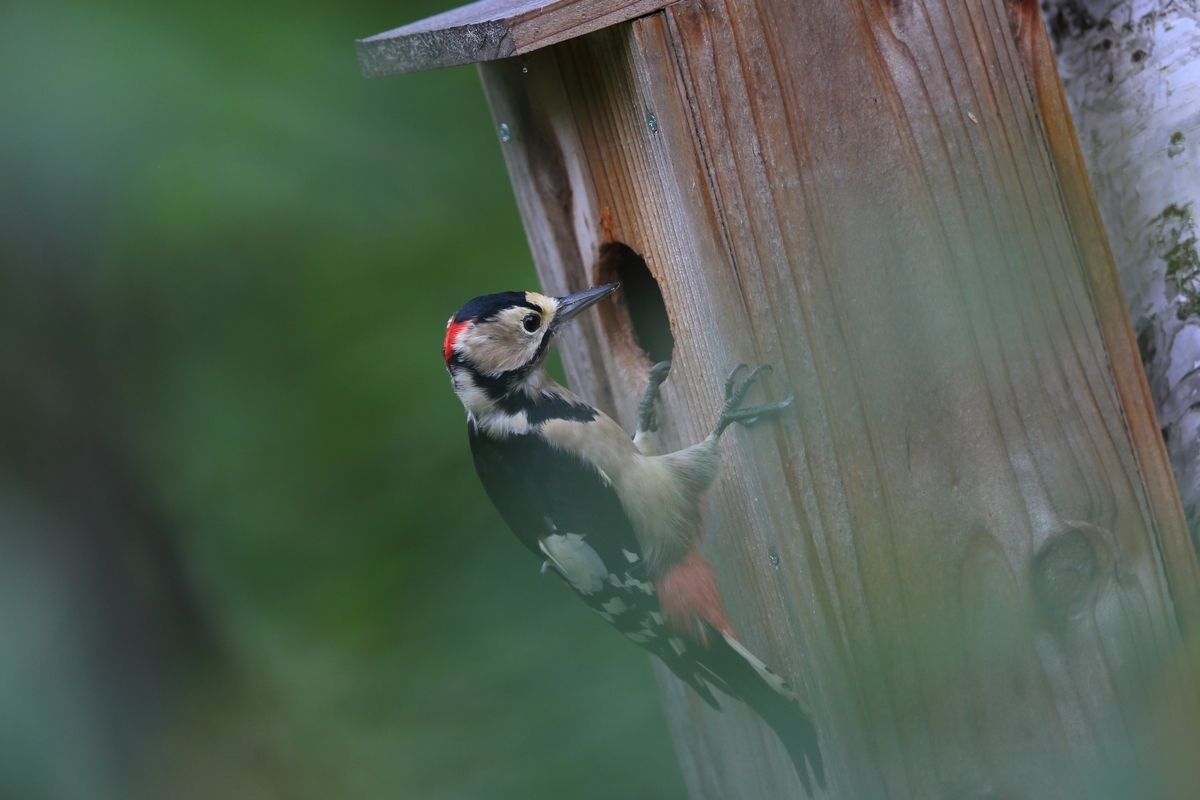 シジュウカラの巣箱に入るアカゲラを何度も見ています。