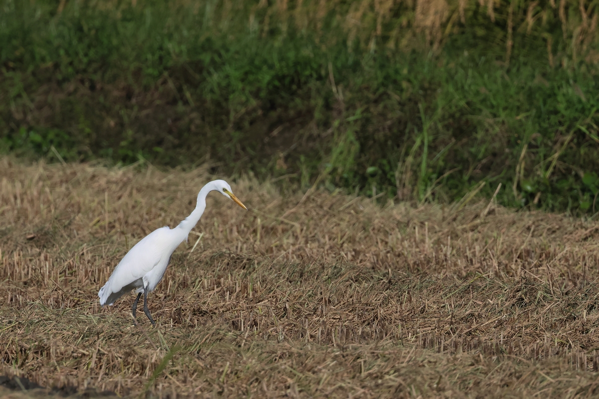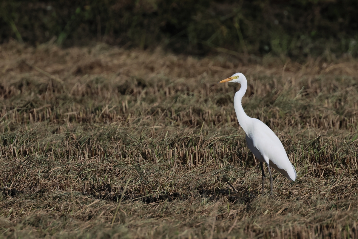 先月下旬に稲刈りの終わった田んぼにチュウサギがいました。