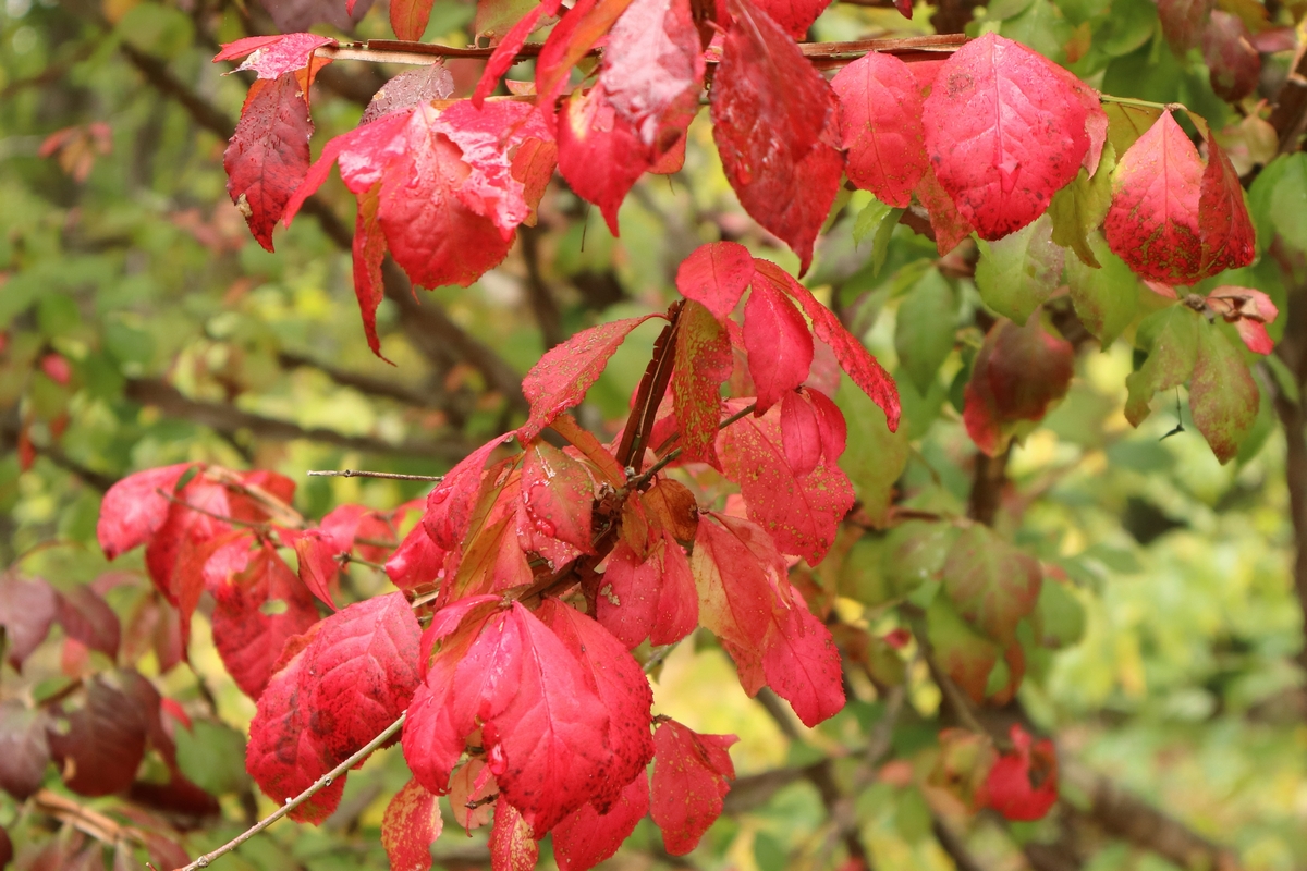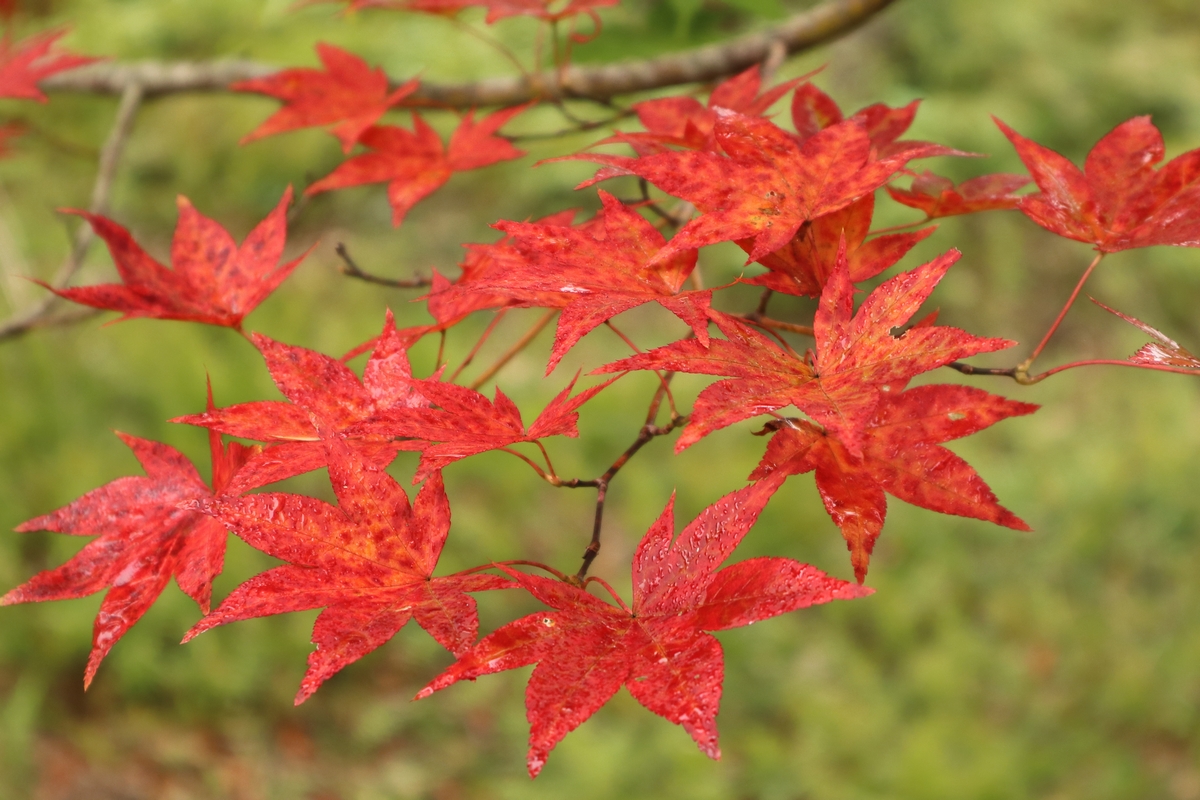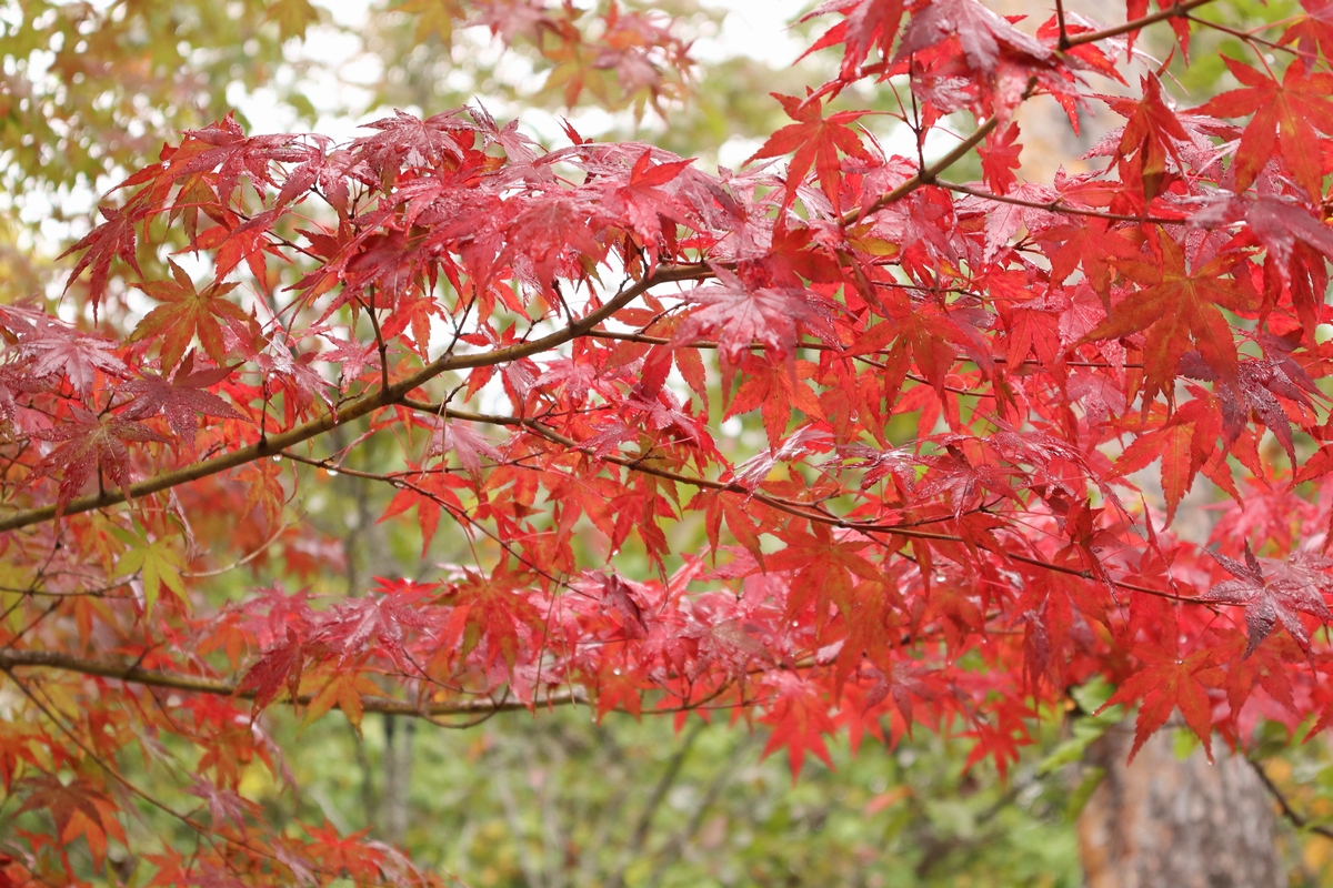 1100mのマイフィールドに やっと 楓やイロハモミジが紅く綺麗な季節が到来しました。 陽にあたると いっそう鮮やかな美しい赤色です