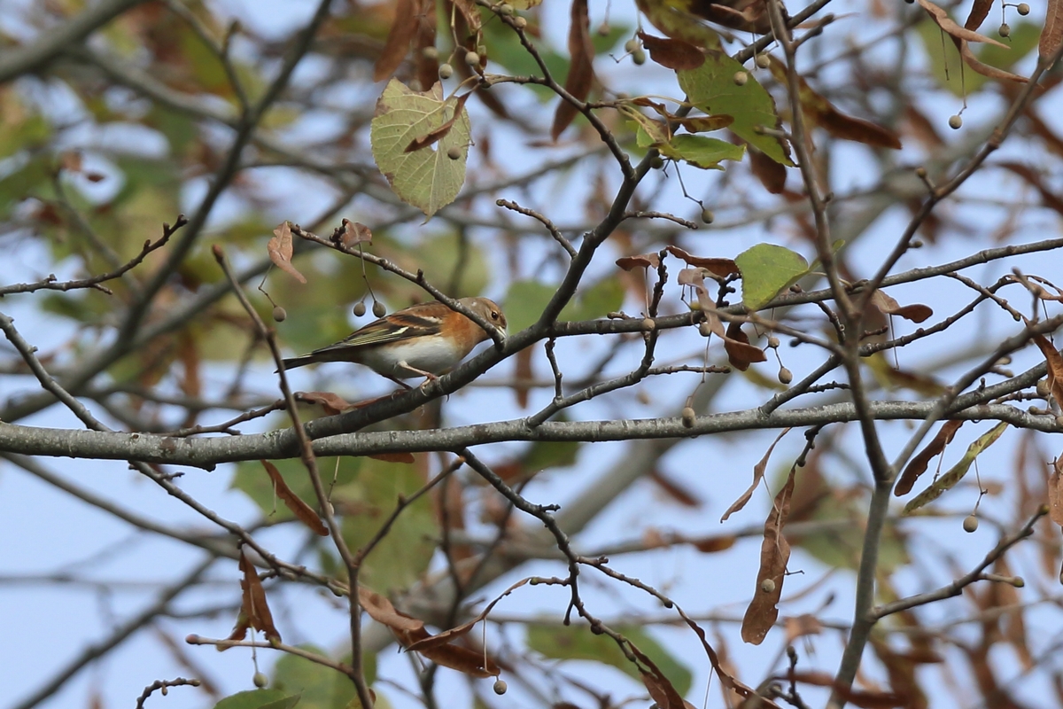 フィールド上空をアトリの30〜40羽の群れが飛んでいきます。