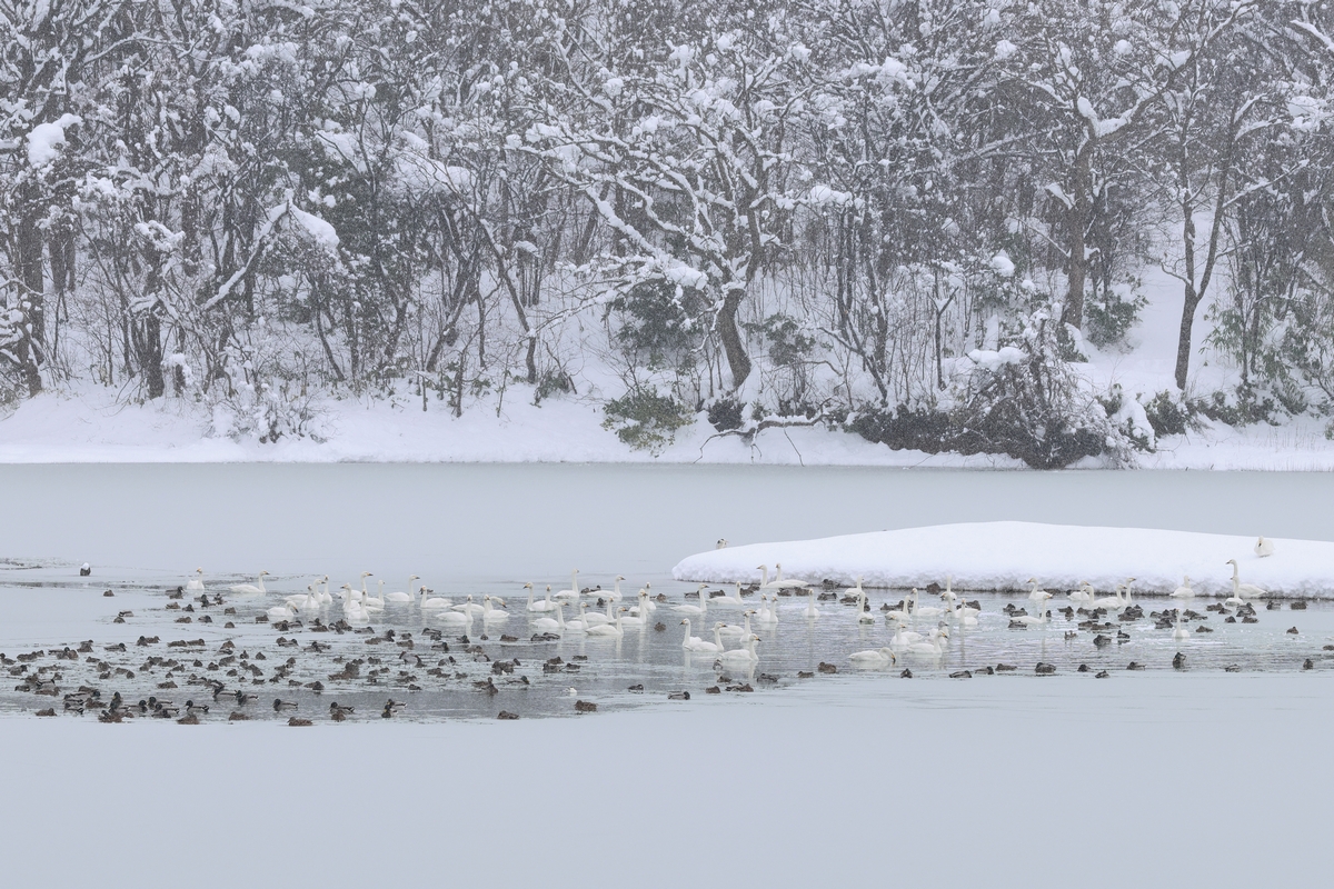 この日は朝から雪が降っていましたが、コハクチョウを見に少しハードなドライブをしてきました。