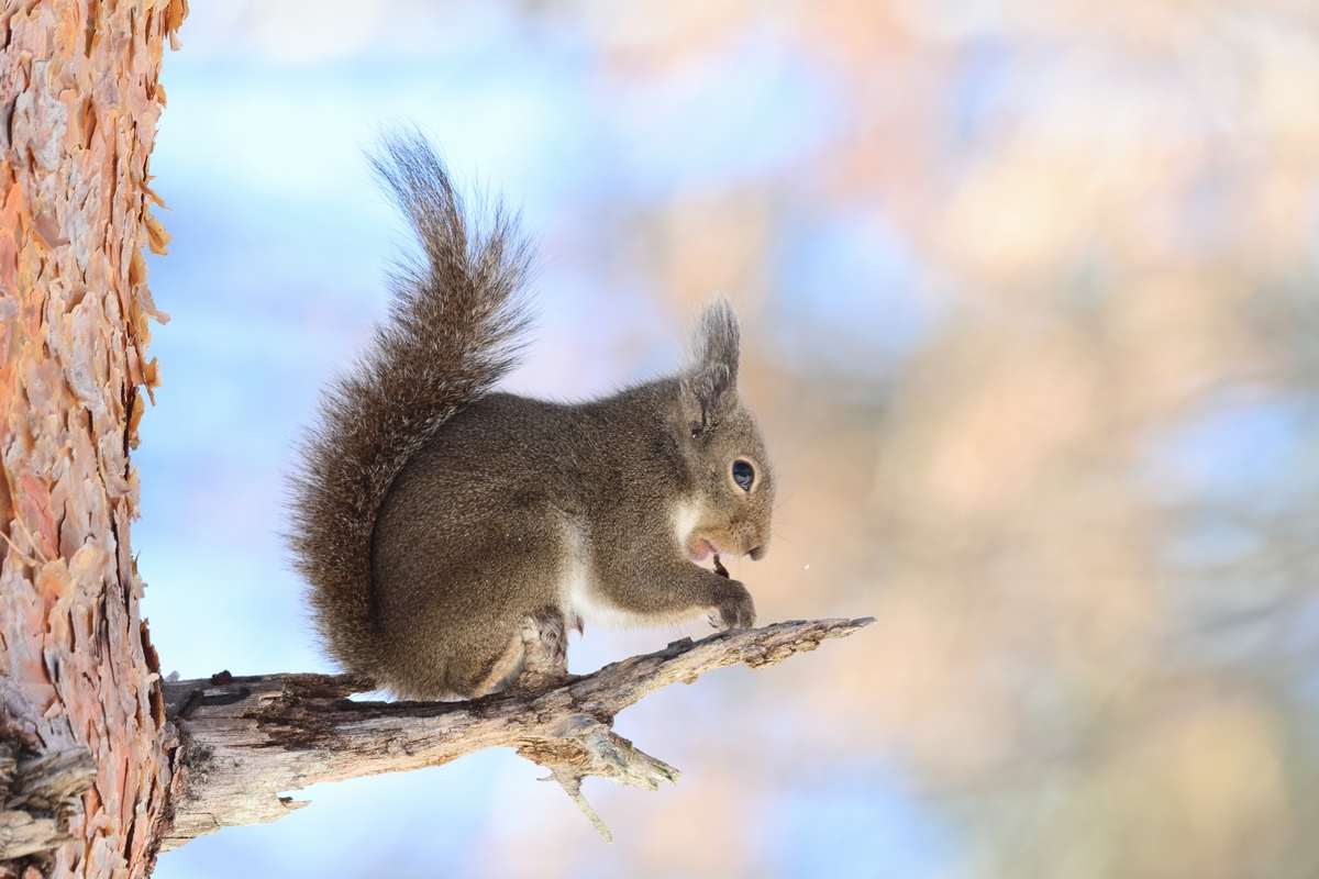 しばらくご無沙汰しました。 そちらでは この時期にも 雪の上を飛び回るリスが見れるのですか。 いいですね。 私はリスやキツネの足跡(フィールドサイン)を見たくて、群馬の北部にあるスキー場の隣の標高の高い雪原でスノーシュー 散歩をしました。ところがこの日は悪天候で大雪と風雪、気温がおそらくマイナス14度ぐらい。リスの足跡 どころか 自分たちが歩いた足跡もしばらくすると 降雪と風で消えてしまうような状態。 冬山の厳しさをたっぷりと味わえた「充実の」1日でした。 今度はもう少し天気の良い時に 再チャレンジしたいものです。 それでも動き回るリスやキツネを見ることはかなり難しいでしょうね、 そちらと違って。