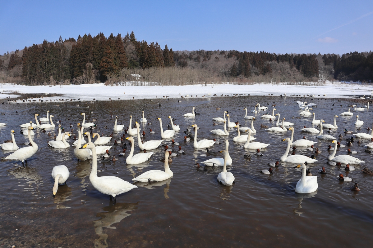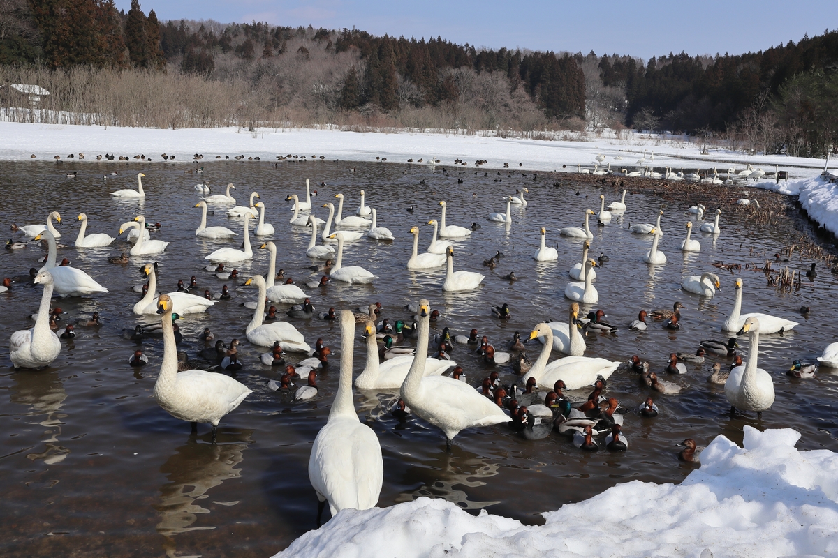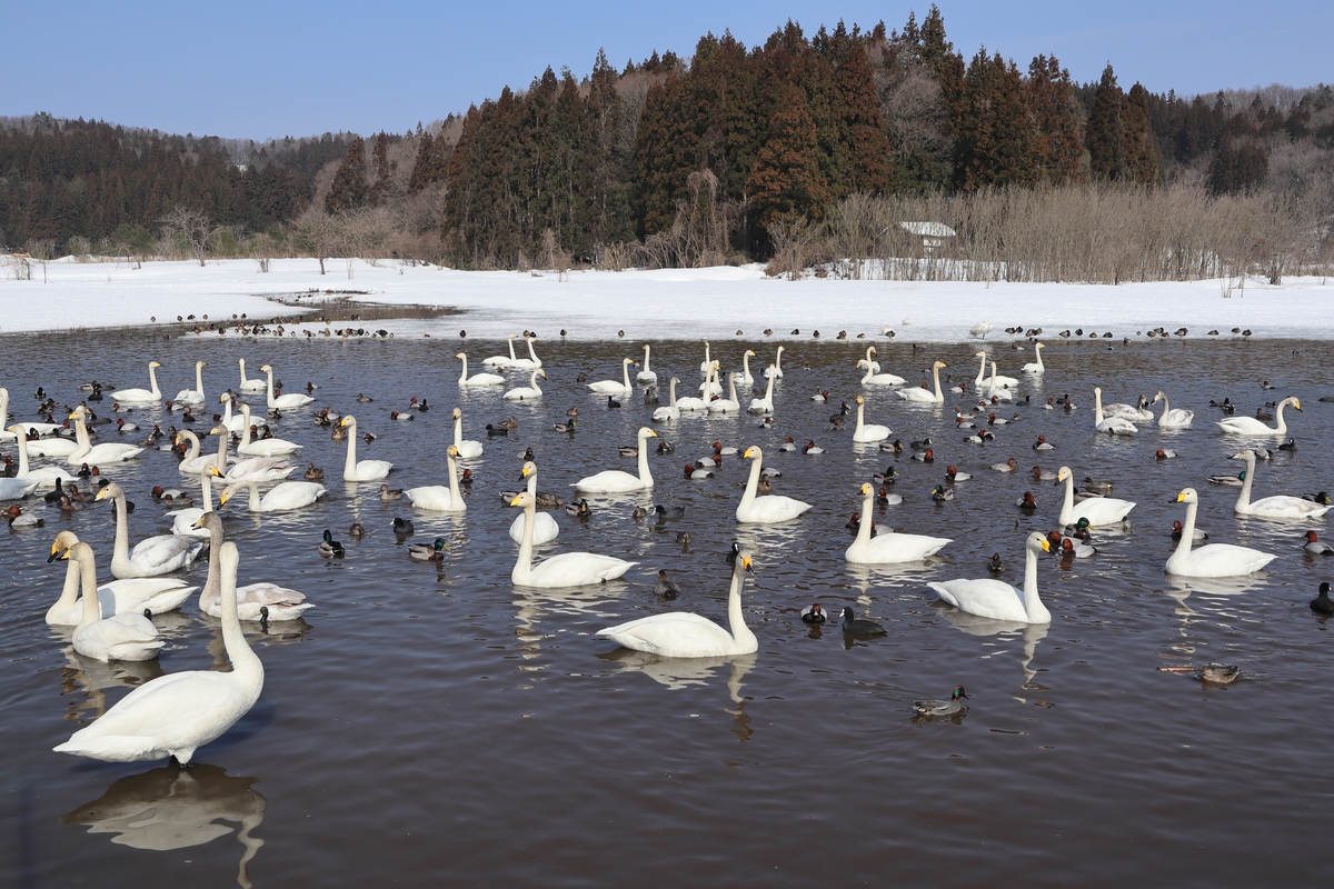 秋に蓮を刈り取り、瓢湖などと同じように餌やりをしているそうです。