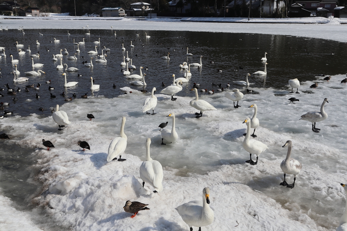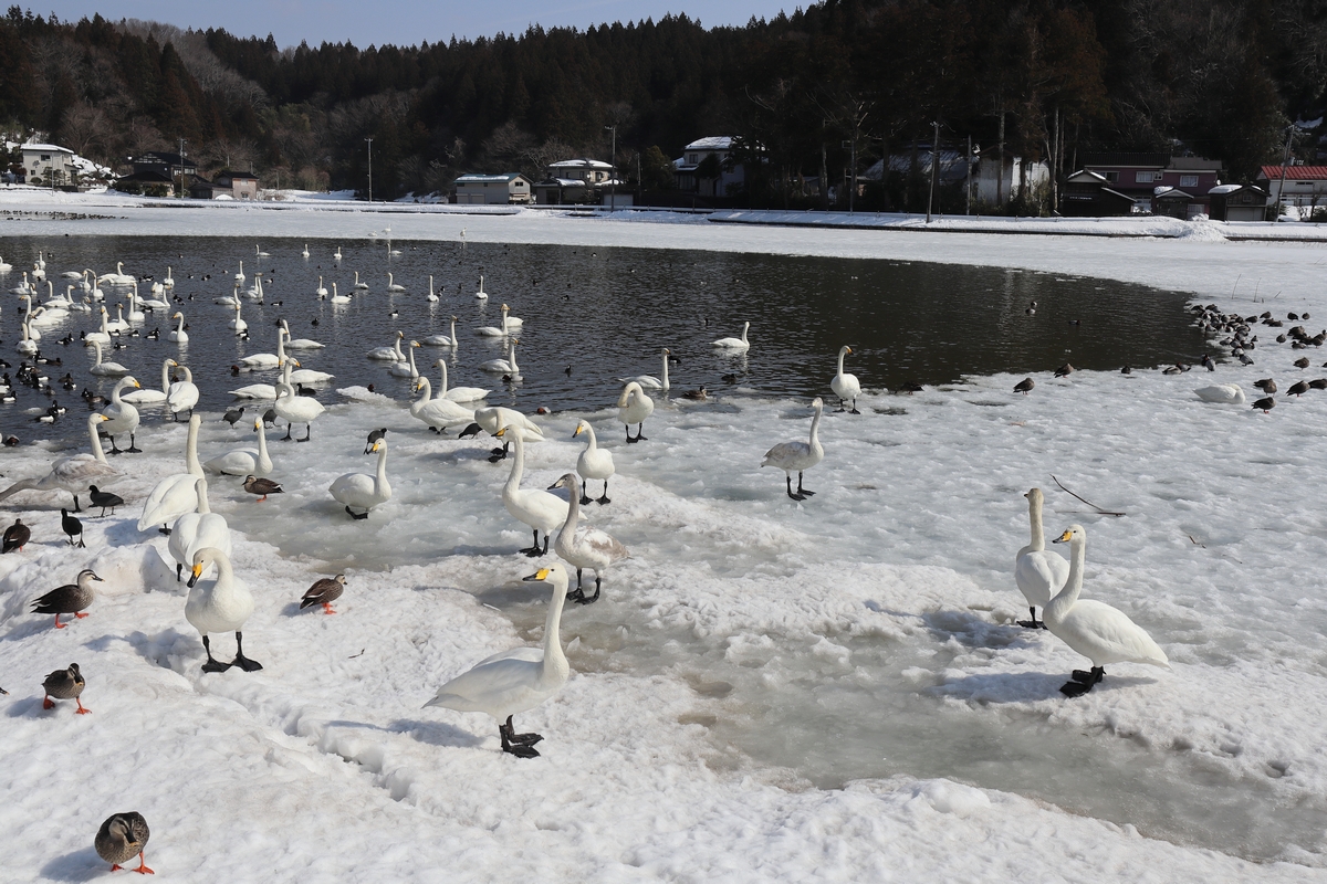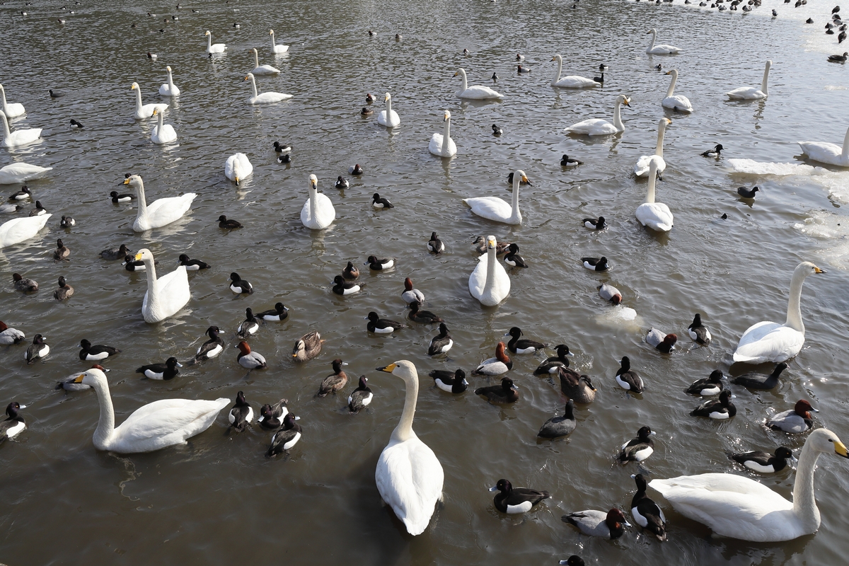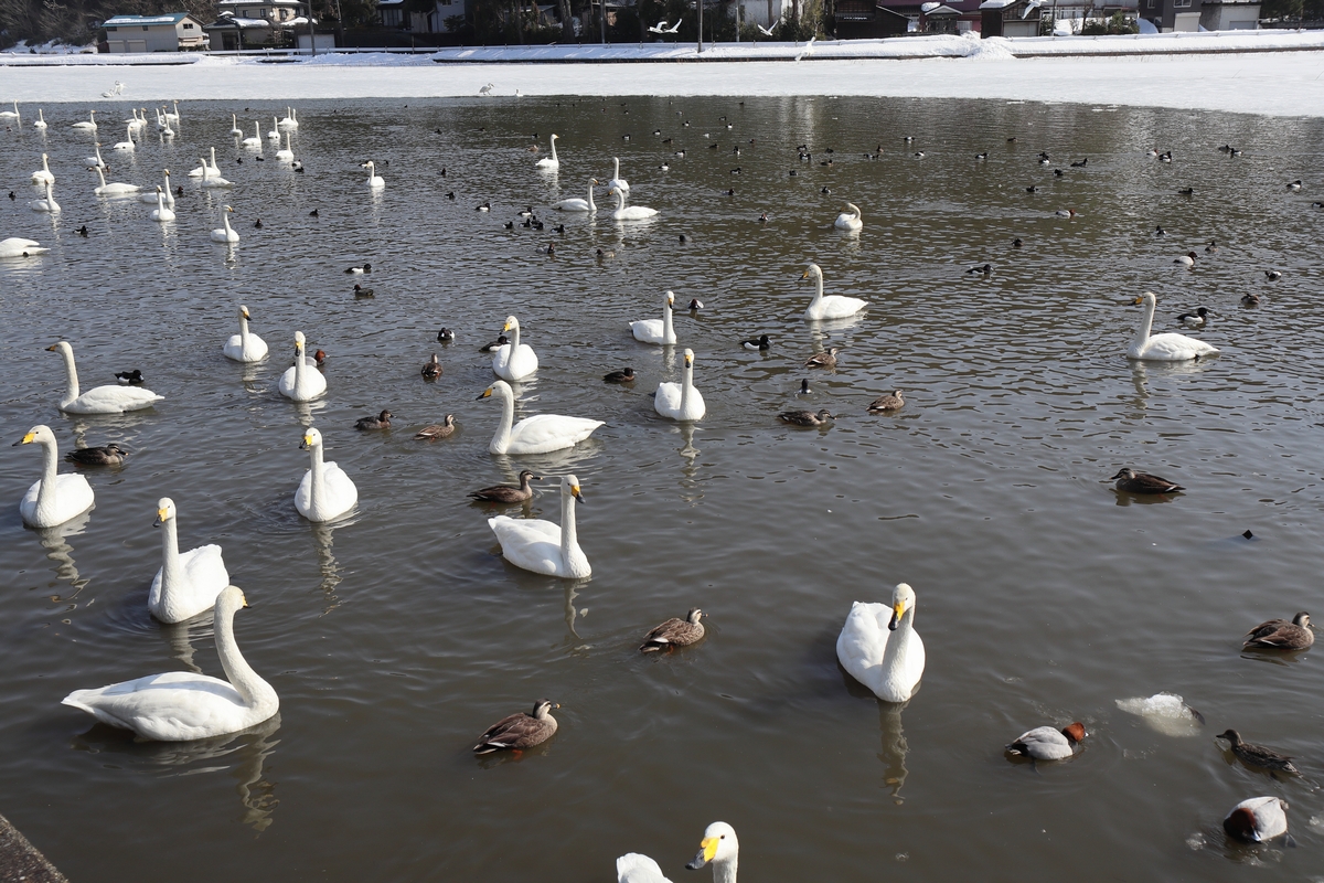 秋に蓮を刈り取り、瓢湖などと同じように餌やりをしているそうです。