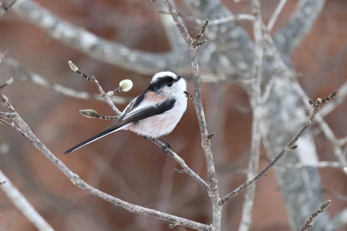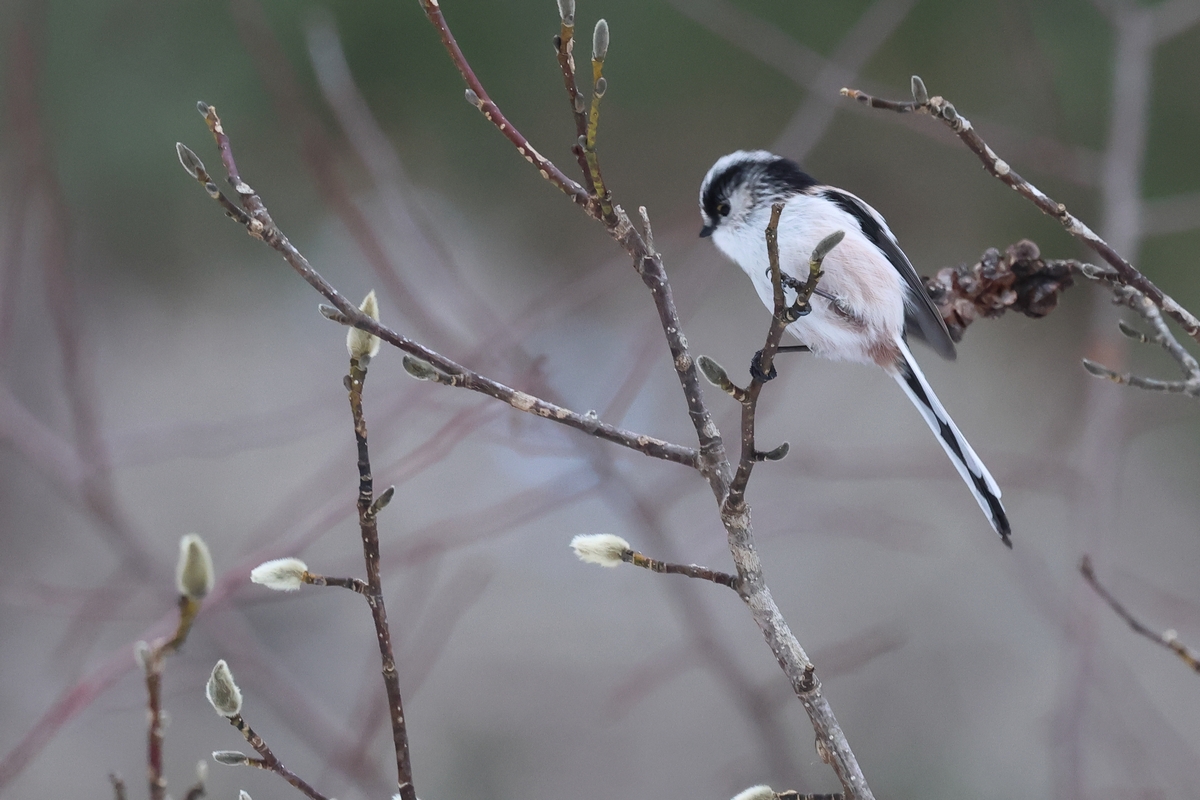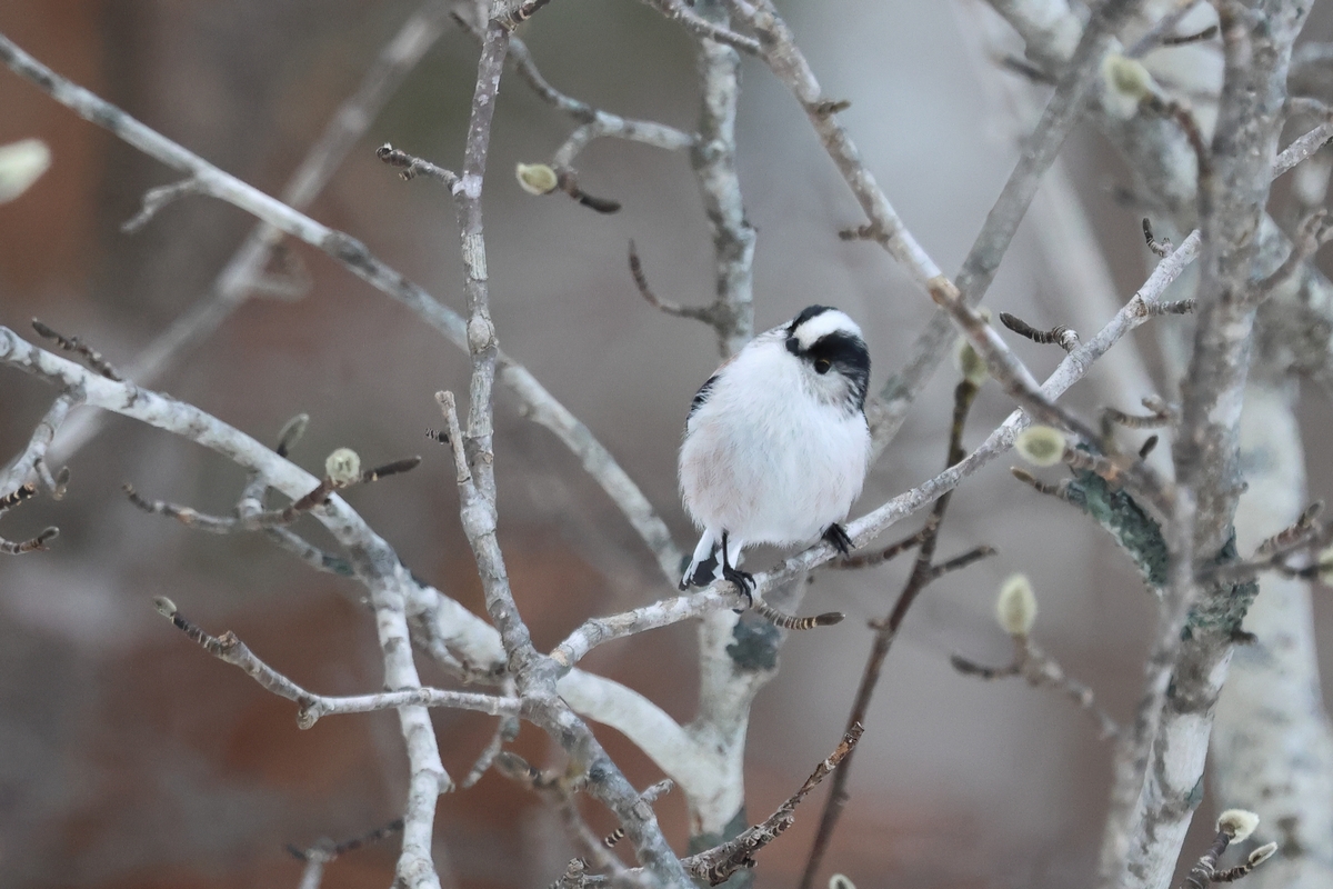 エナガは留鳥で、ジュルジュルと鳴いて来訪を知らせてくれます。